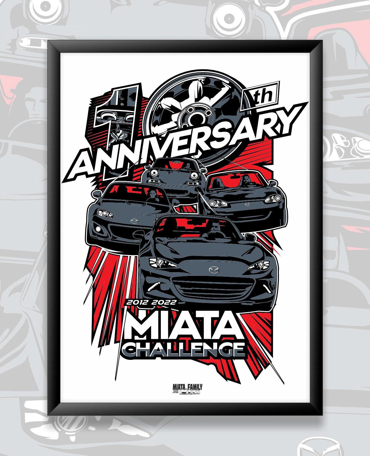 ✔ Official Miata Challenge 2022 Anniversary Poster – celebrating 10 years of racing heritage.