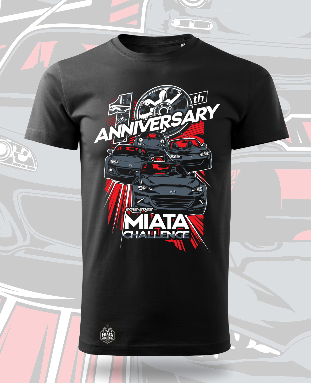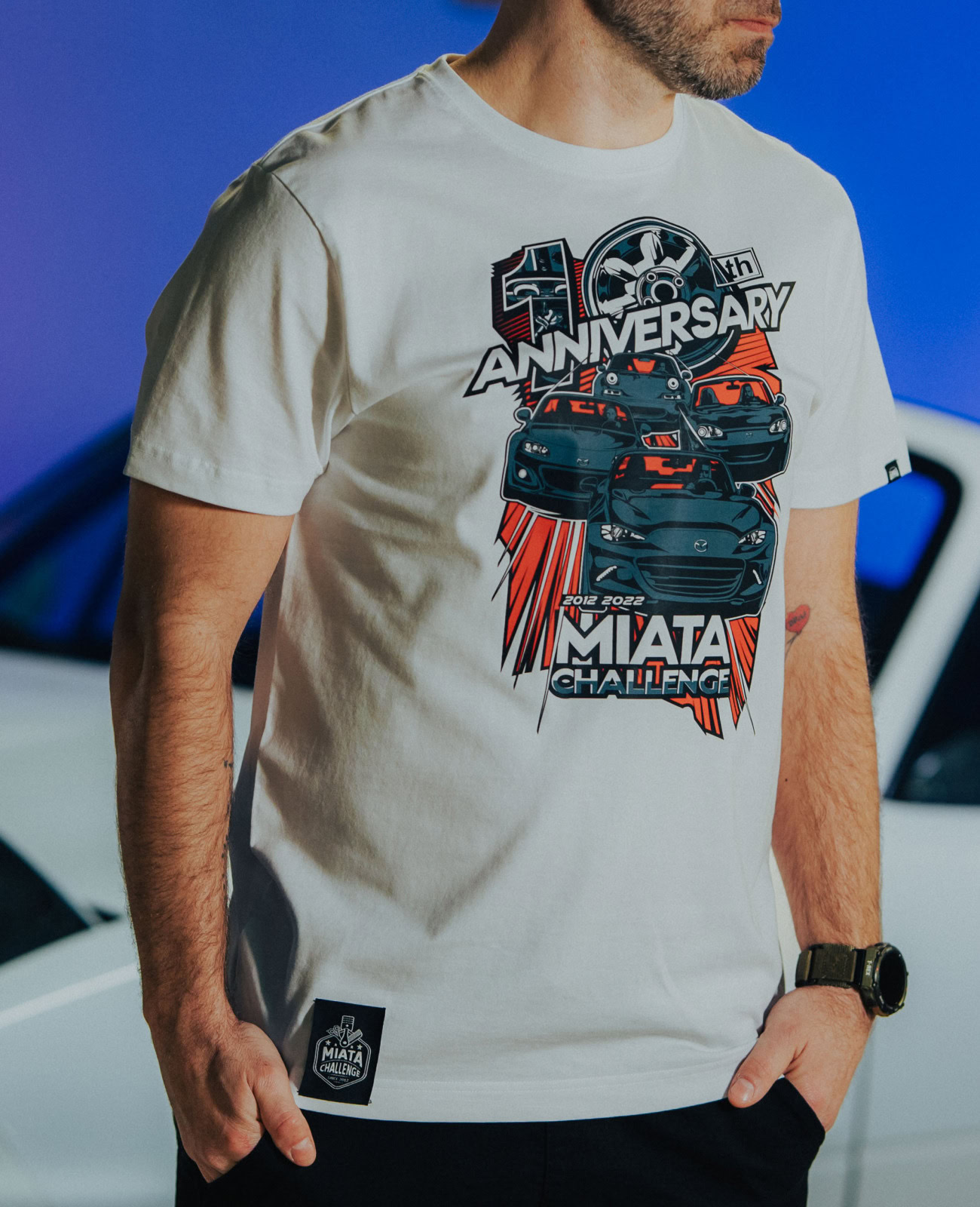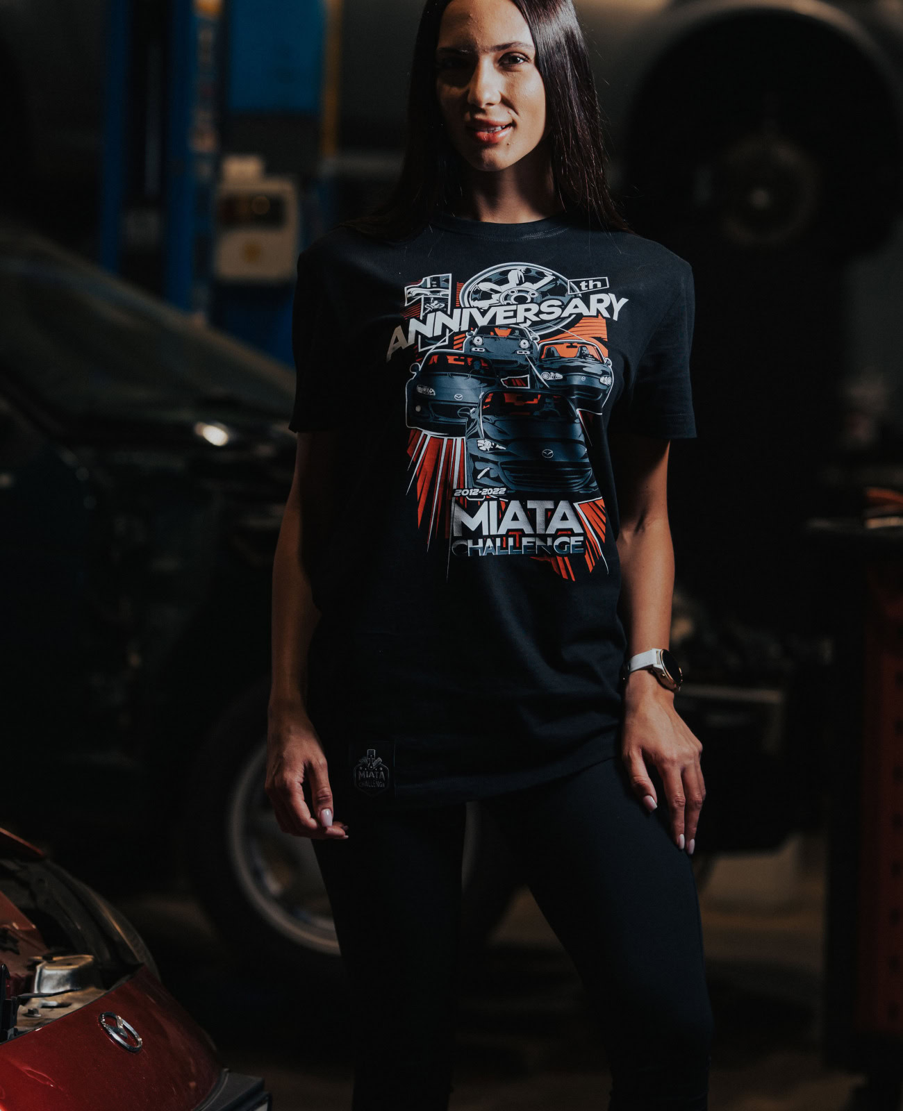 To celebrate the 10th Anniversary of Miata Challenge (2012โ2022), we created a special edition T-shirt that honors a decade of racing, passion, and the legendary Mazda MX-5.