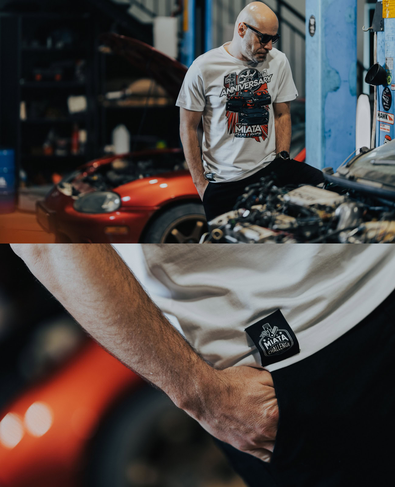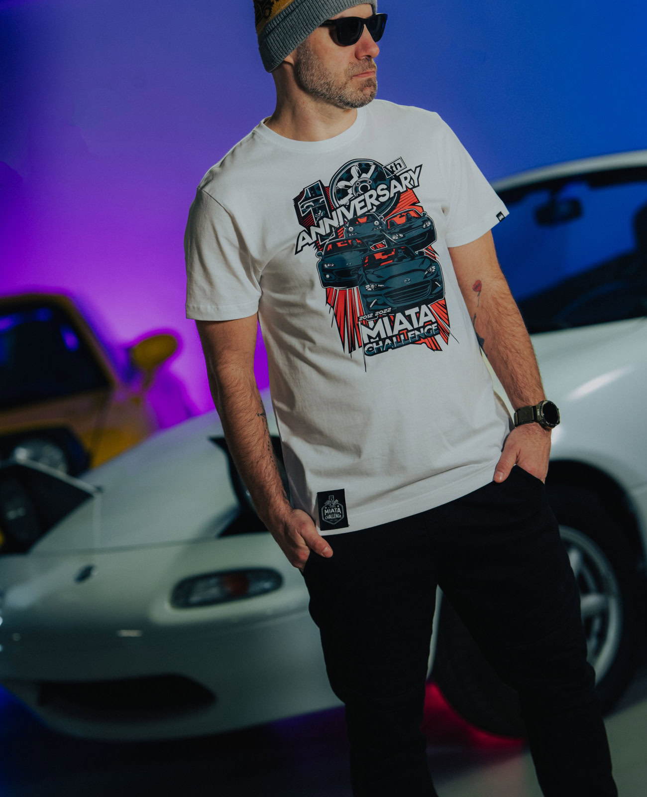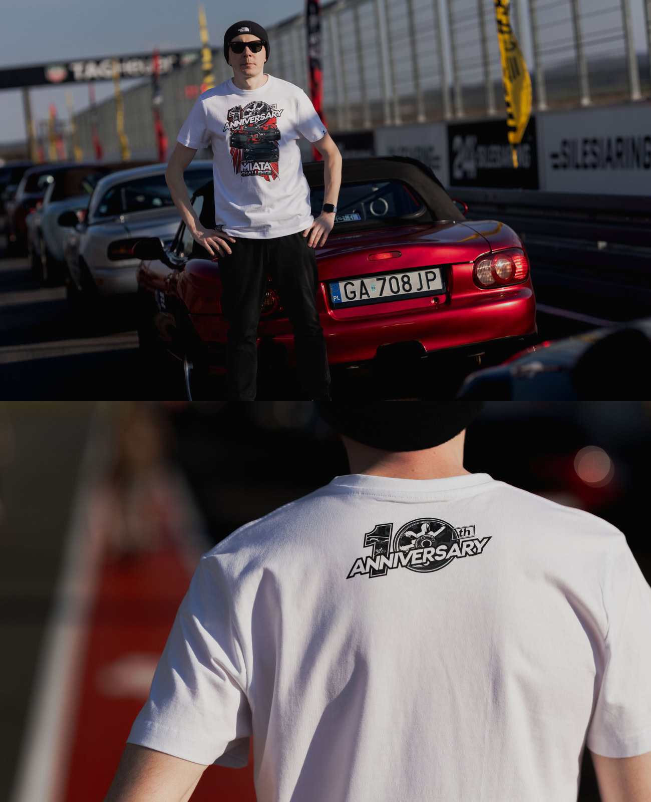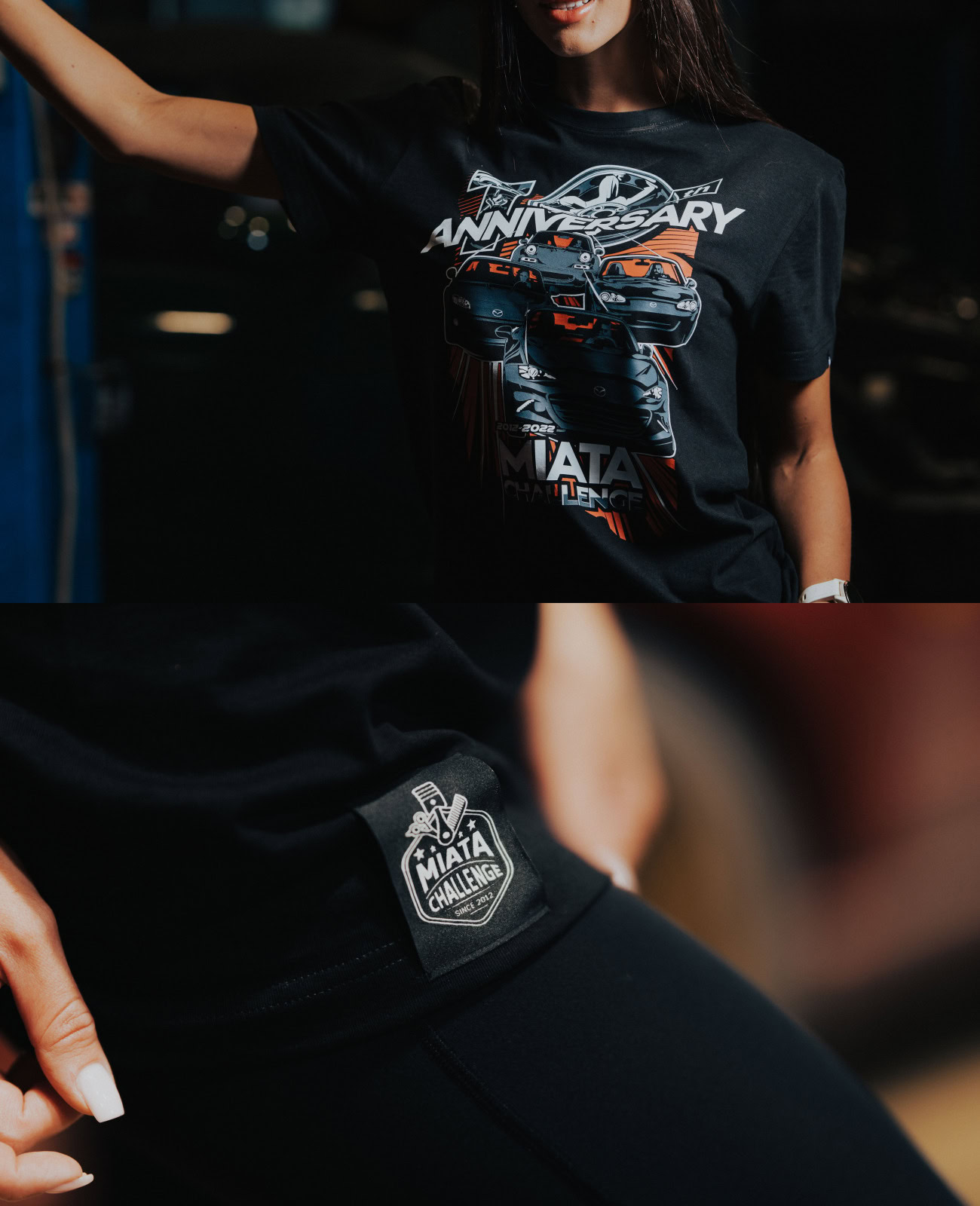 To celebrate the 10th Anniversary of Miata Challenge (2012โ2022), we created a special edition T-shirt that honors a decade of racing, passion, and the legendary Mazda MX-5.