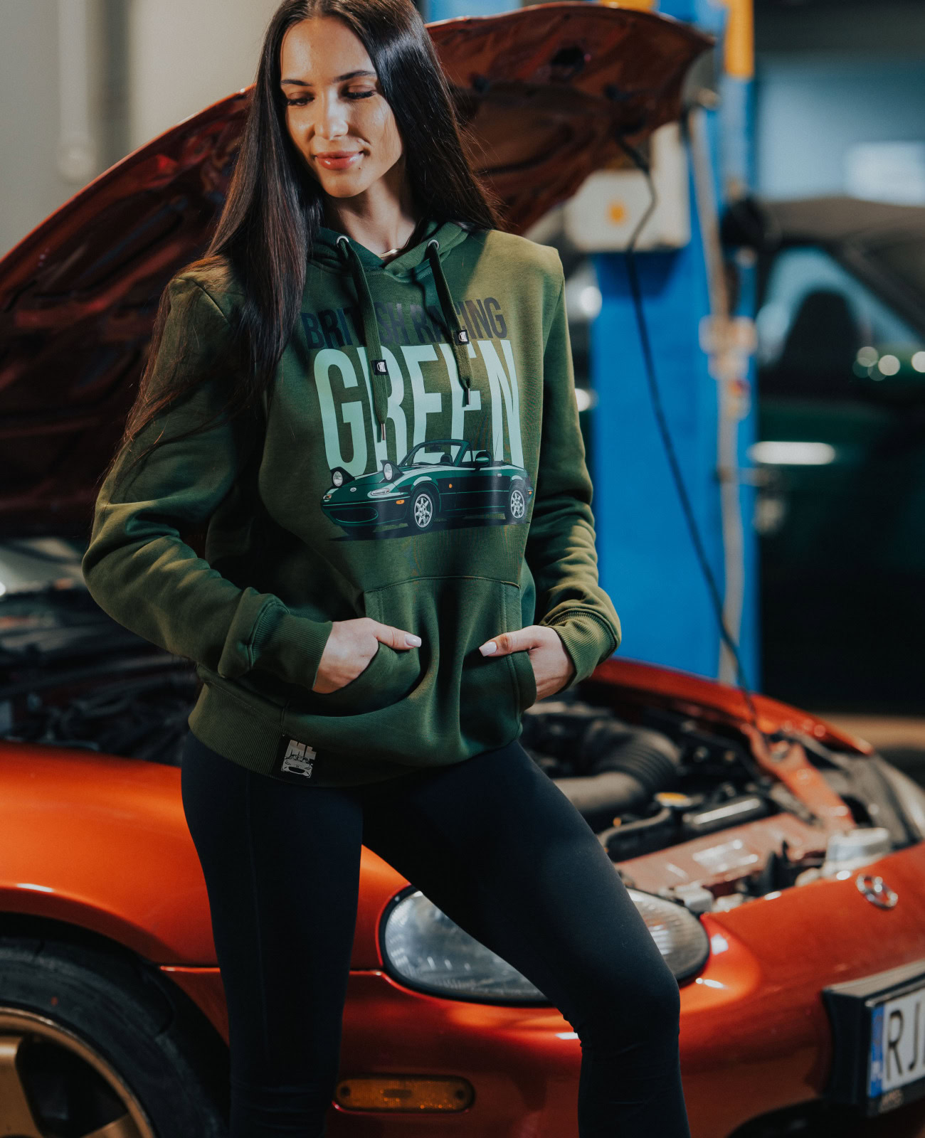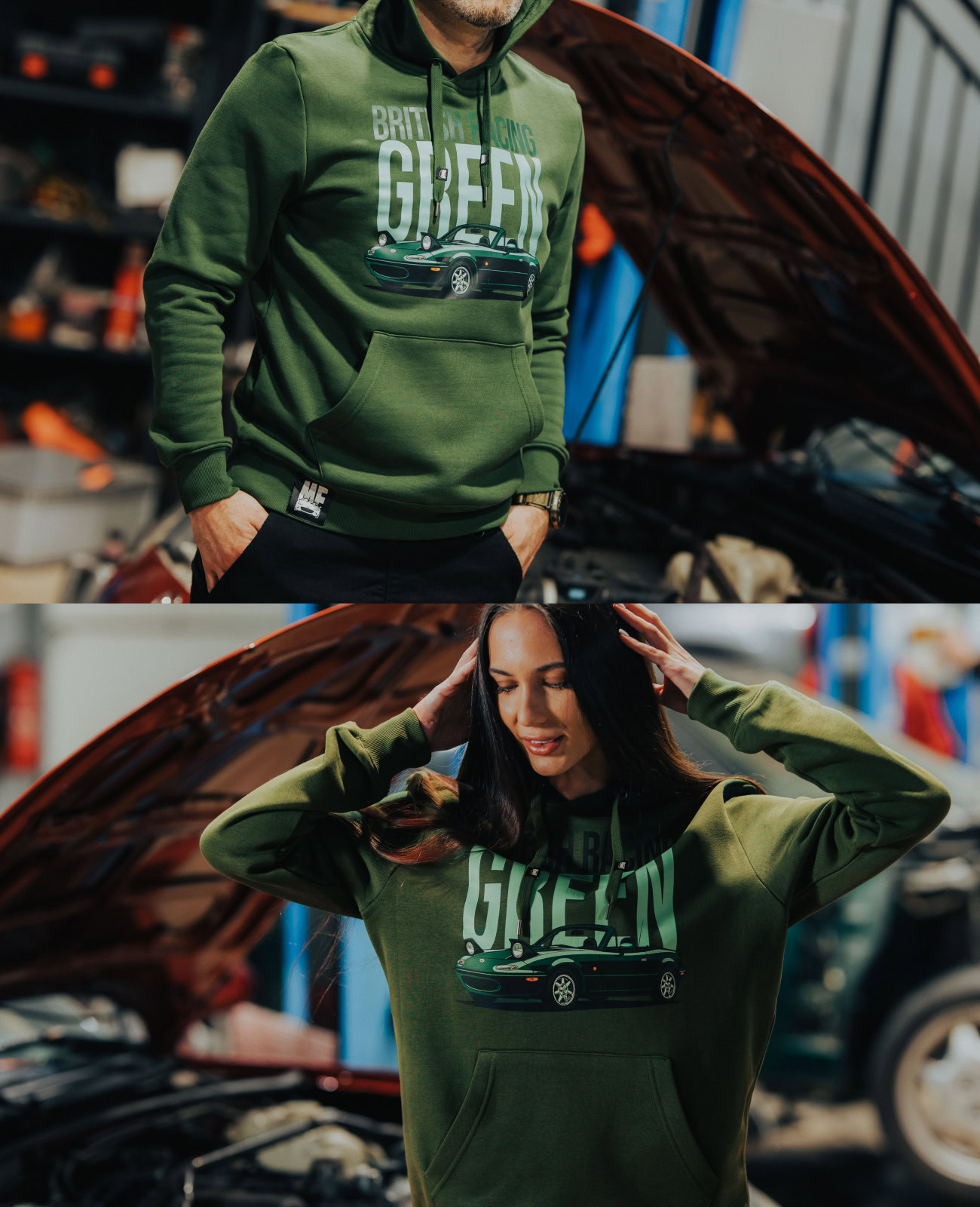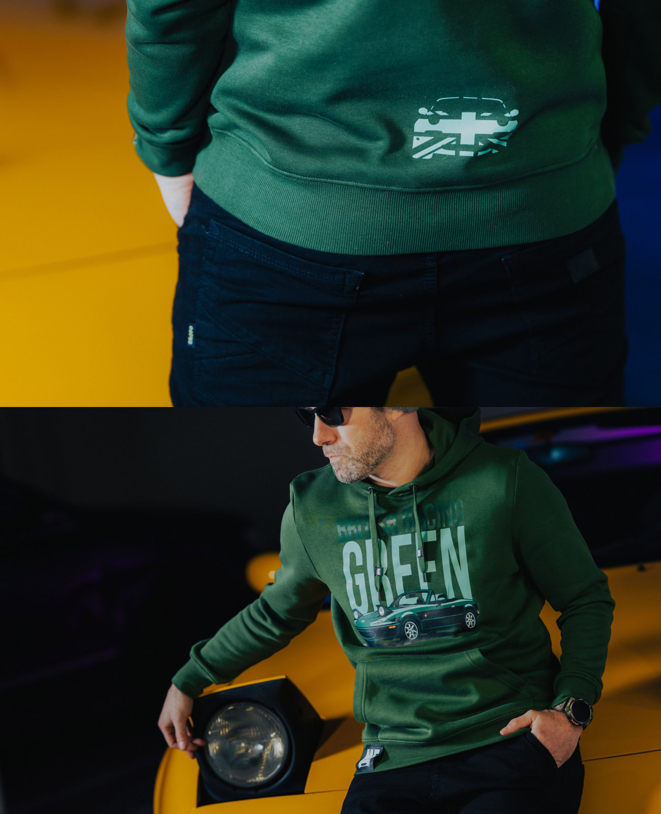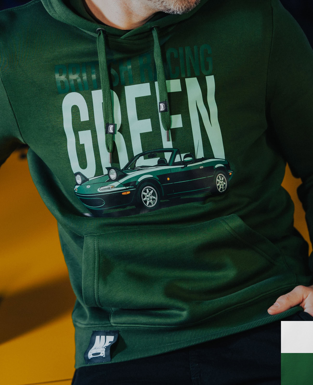 โœ” British Racing Green Tribute: A love letter to the OG roadster in British Racing Green. Pop-ups raised, smile engaged. Itโ€™s the hoodie your MX-5 would buy if it had a credit card.