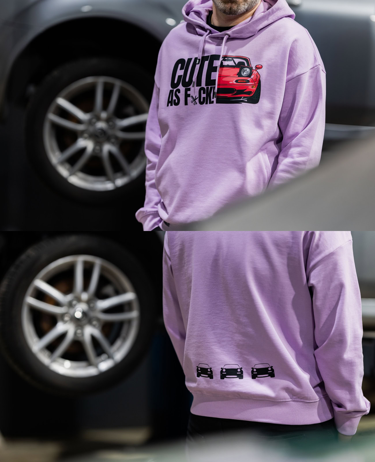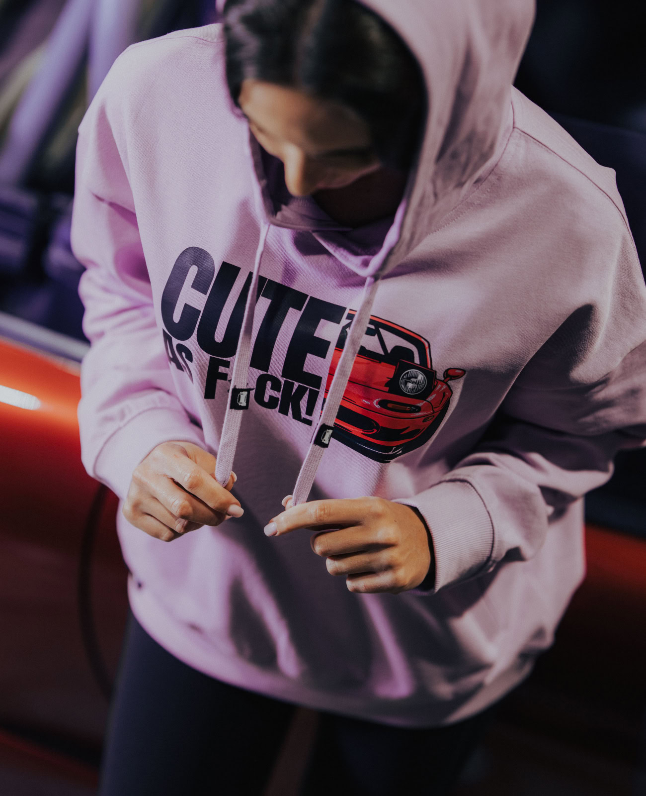 Playful, pastel, and unapologetically Miata. The CUTE AS F*CK hoodie puts the NAโ€™s pop-up charm front and center with a bold, humorous slogan. Available in pastel pink and mint.
