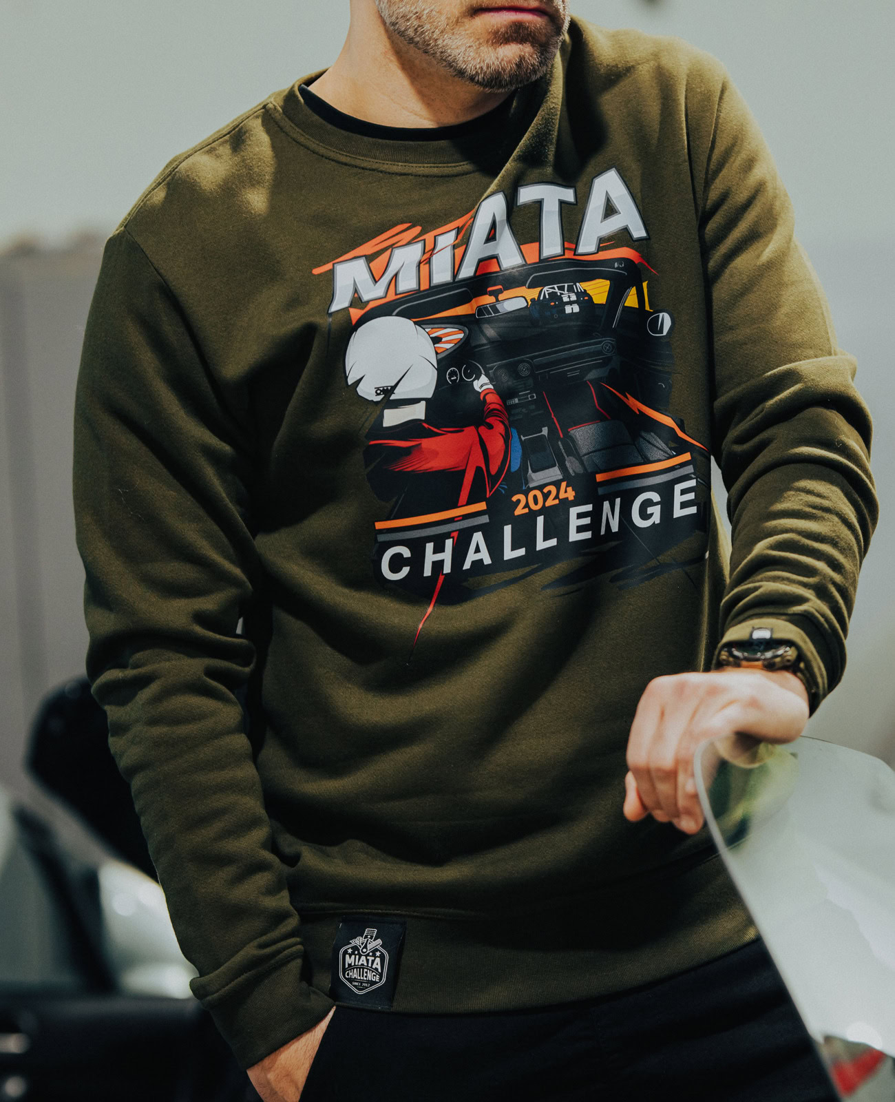 To celebrate the 2024 Miata Challenge season, we created an official Sweatshirt that brings you straight into the cockpit of the legendary MX-5 NA.