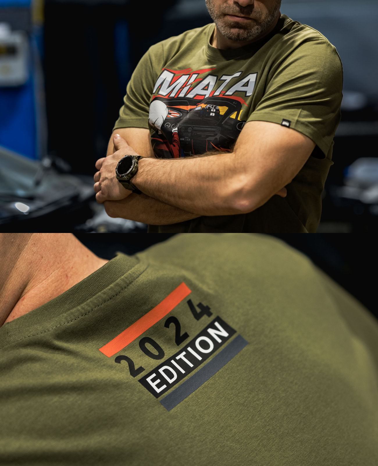 To celebrate the 2024 Miata Challenge season, we created an official T-shirt that brings you straight into the cockpit of the legendary MX-5 NA.