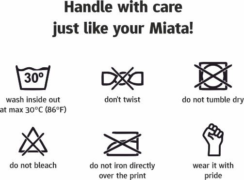 Your T-shirt or hoodie from MiataFamily.com is just like your Mazda MX-5 – take good care of it, and it will bring you joy for years. Here’s our user manual (more lifestyle than workshop 😉).